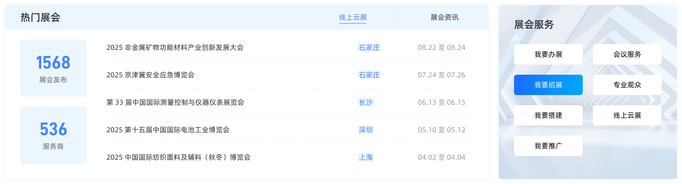 展会共服平台,聚行业展会资源,为企业搭展示台、拓商机路